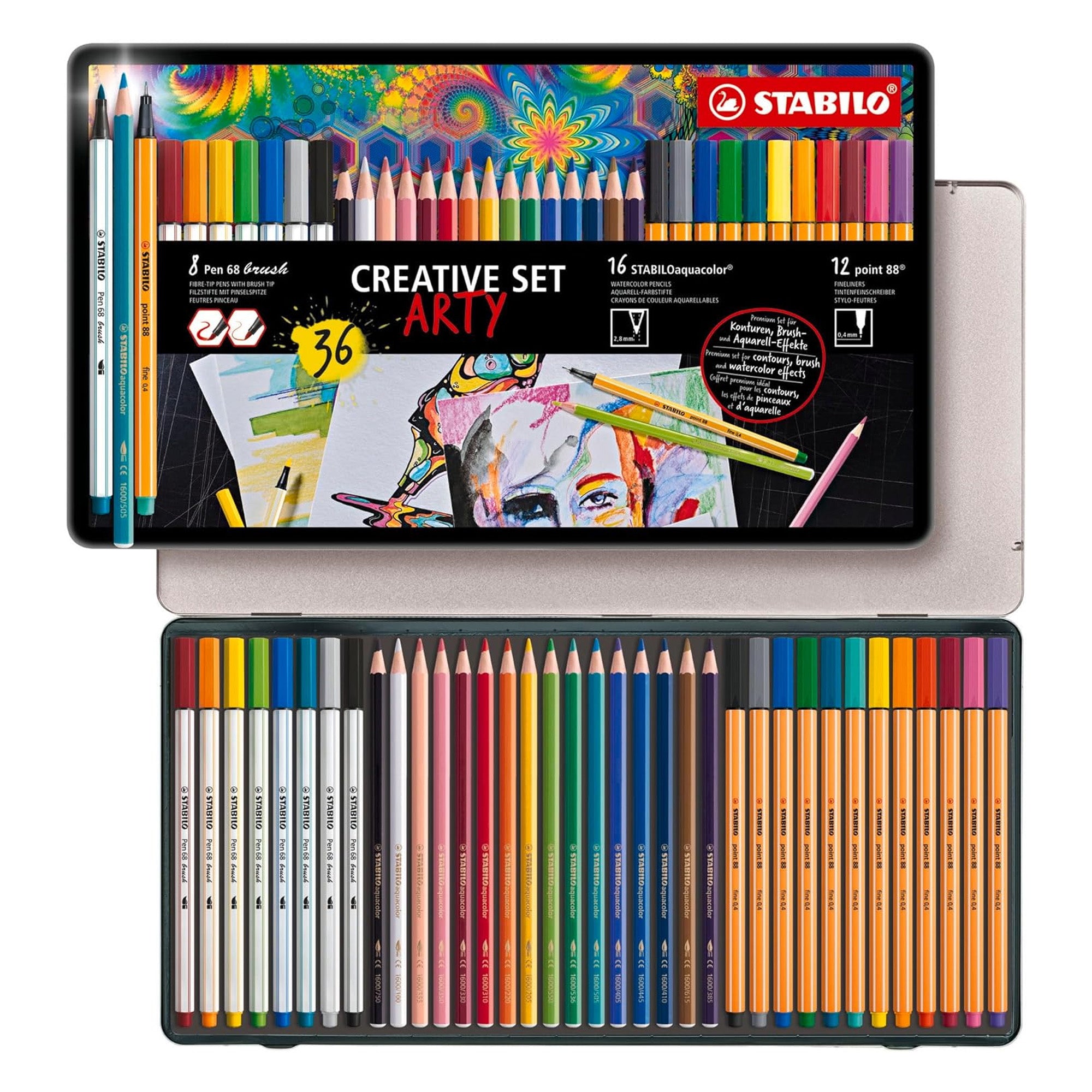 Stabilo ARTY Creative Set of 36 - 8 Pen 68 Brush, 16 Aquacolor, 12 point 88