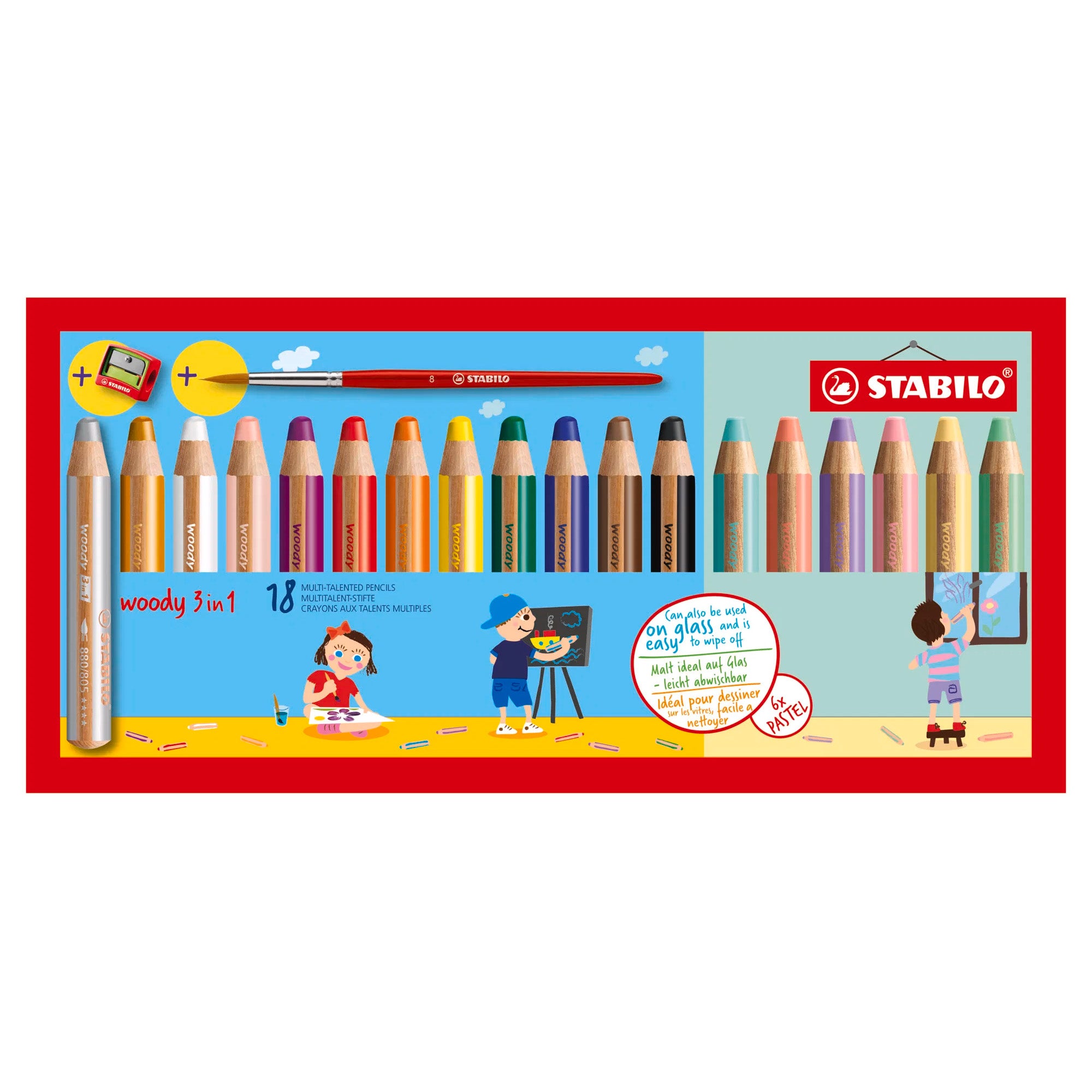 Stabilo Woody 3 in 1 Crayon Pencils - Set of 18 with Pastel