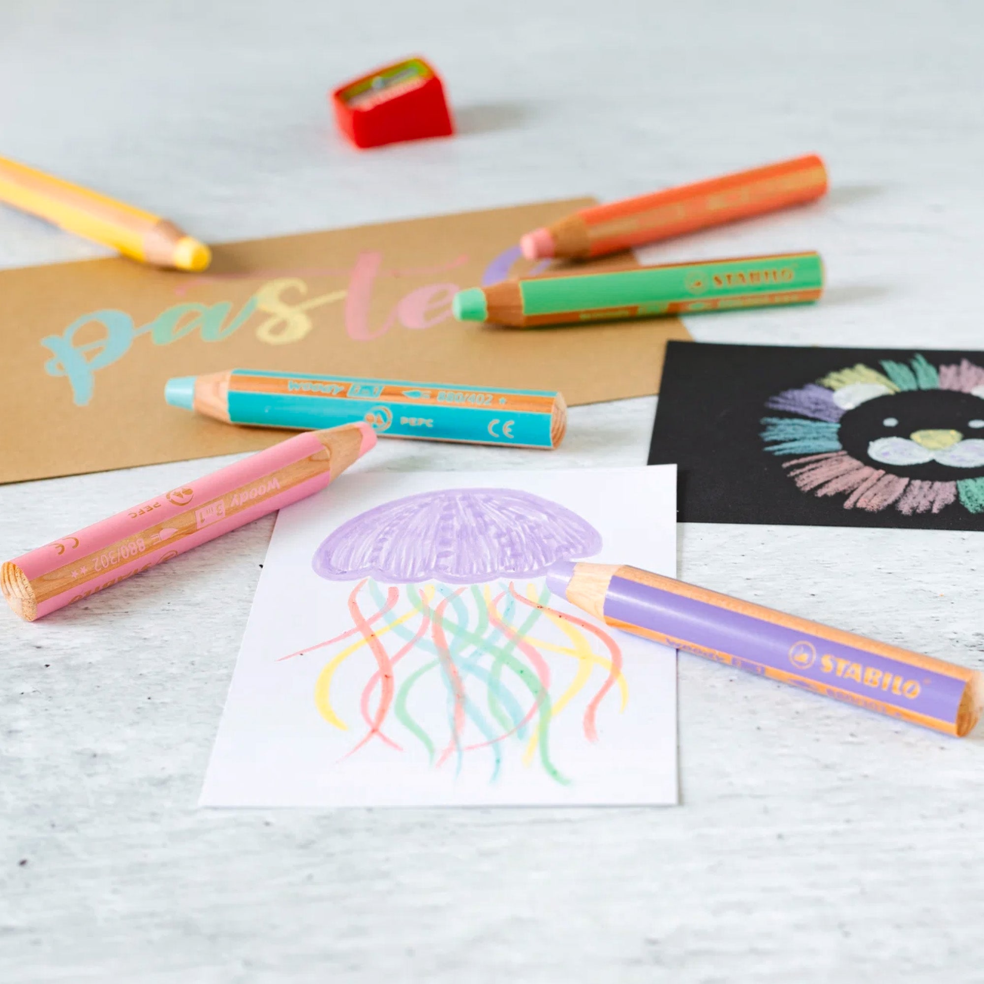 Stabilo Woody 3 in 1 Crayon Pencils in Pastel Colors - Set of 6