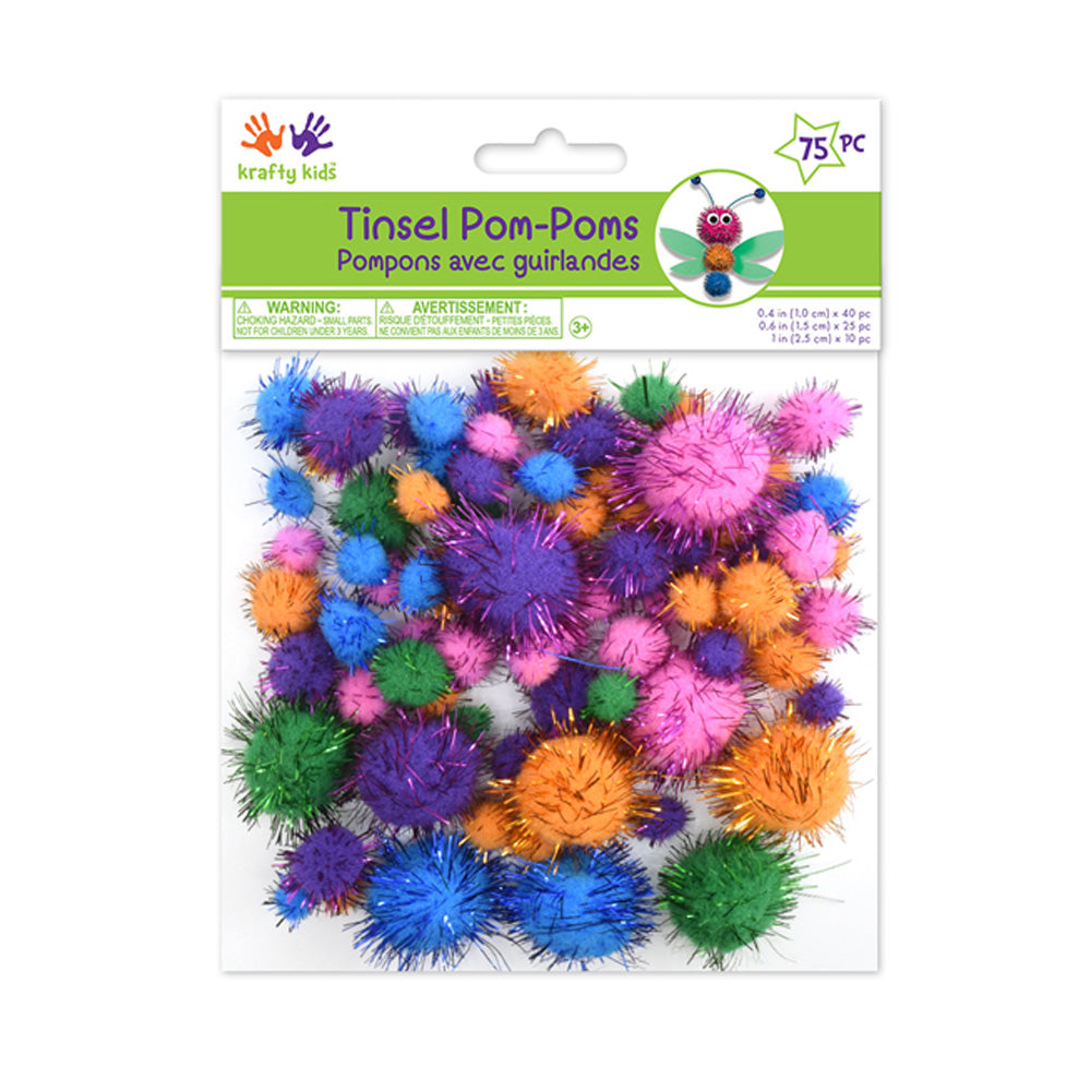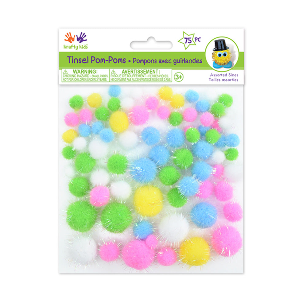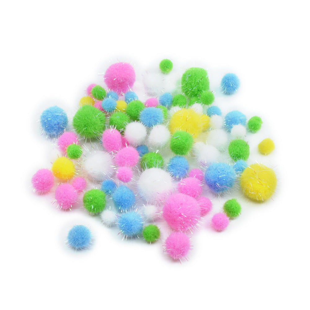 Tinsel Pom Poms - Pastel Glitter Mix (75 pcs)