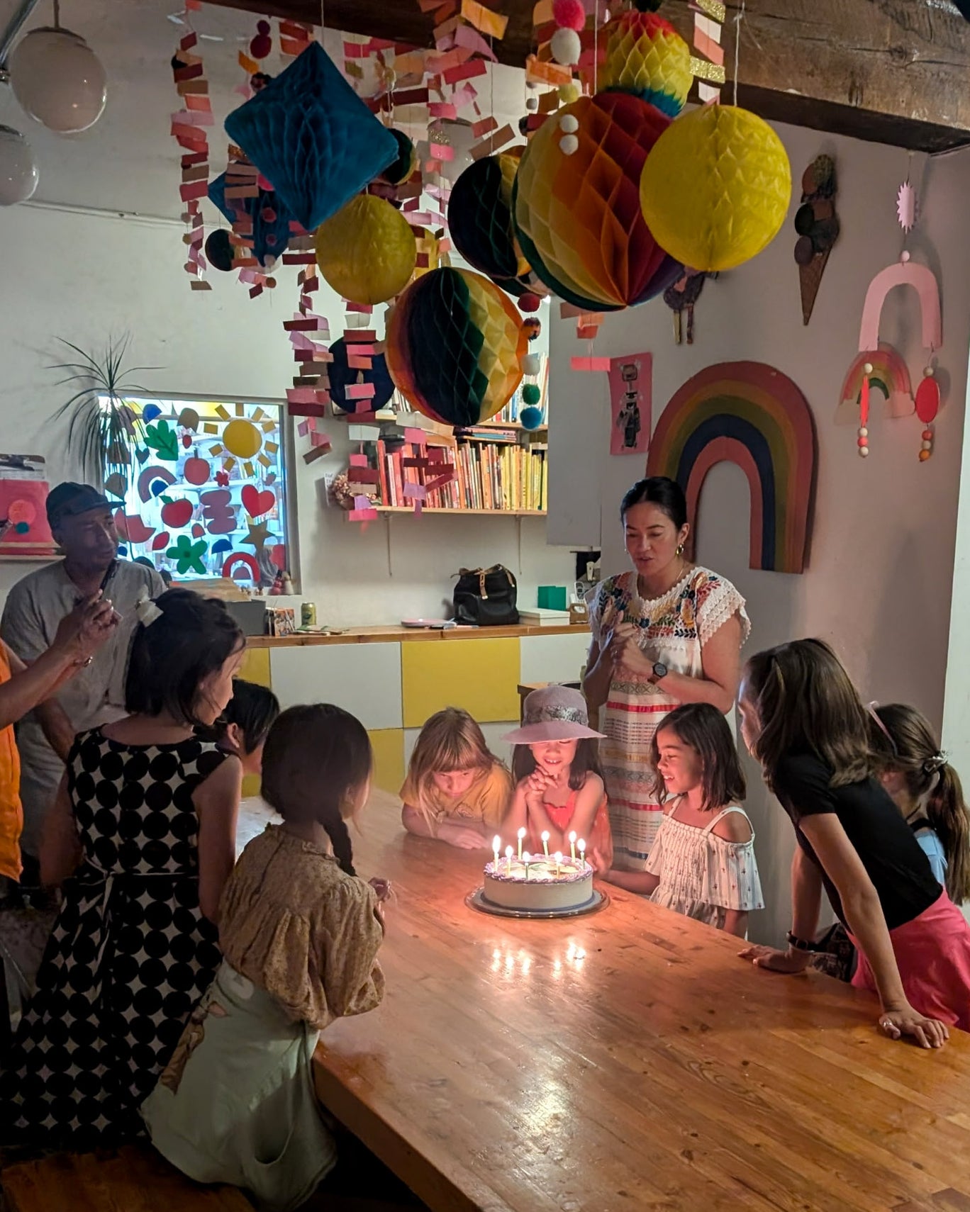 Our space has a 8 child limit, with a maximum of 10 people in the room for age 5+ Parties. Limit includes parent hosts and siblings. This means the for ages 5+, drop-offs are ideal for a focused, fun experience. For ages 3–4, we allow one caregiver per guest if needed.